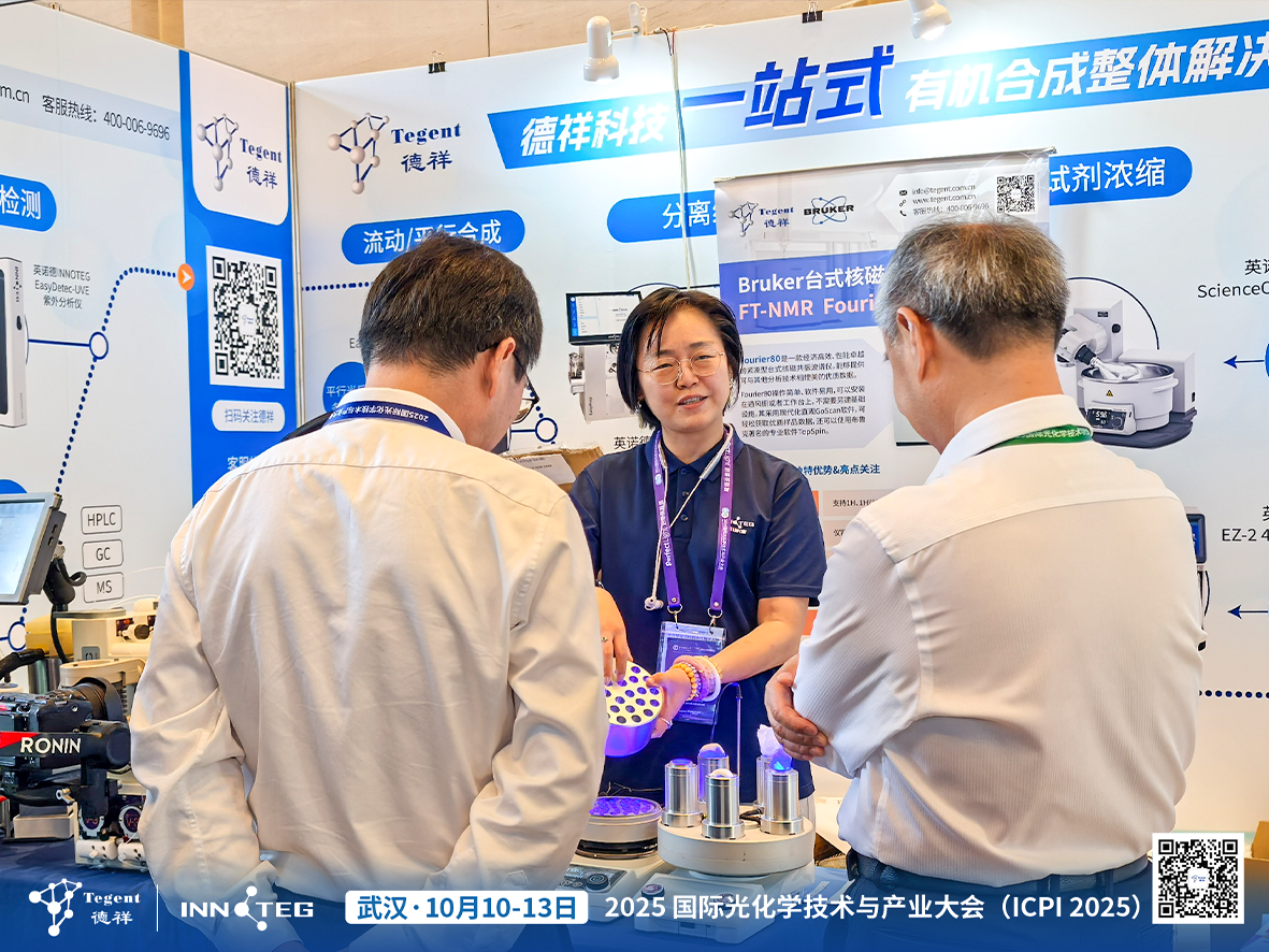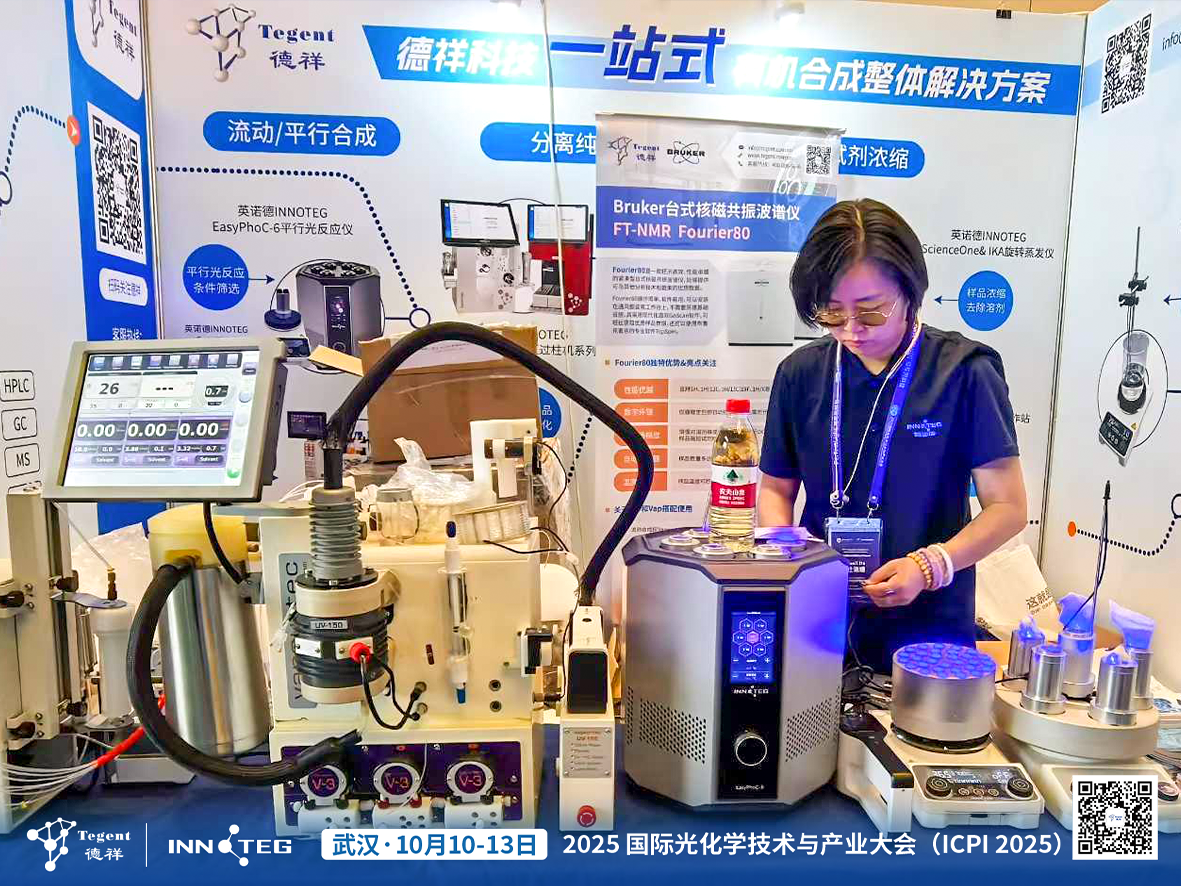展会期间,德祥科技展台始终人气高涨,化身为一个微缩的“先进合成实验室”。我们重点展示的英诺德(INNOTEG)自研系列产品成为全场焦点之一: